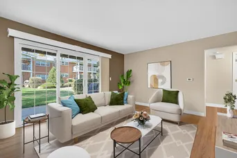 Location is Key, this charming 2-bedroom, 1-bath condo located on a quiet cul-de-sac just steps from downtown Palatine, the Metra station, Palatine Park District, restaurants, shopping, and more! Enjoy a bright and spacious living room with sliding doors that open to a large private patio - perfect for outdoor dining or relaxing with views of a lush green courtyard. The galley kitchen features newer appliances and a walk-in pantry that extends for extra storage. Timeless hardwood floors run throughout the living room, dining area, and both bedrooms. The primary bedroom, shared hallway bath, and a second bedroom which is ideal for guests, a home office, or flex space completes the space. Bonus features include a large shared (2 unit) garage with extra storage space and a laundry room with owned washer and dryer. Low-maintenance living in a prime location - ideal for commuters, first-time buyers, or those looking to downsize!